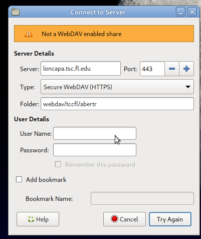 I would like to get WebDAV enabled for LC here at TSC. When I try to connect, I receive a message "Not a WebDAV enabled share."